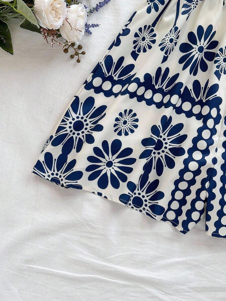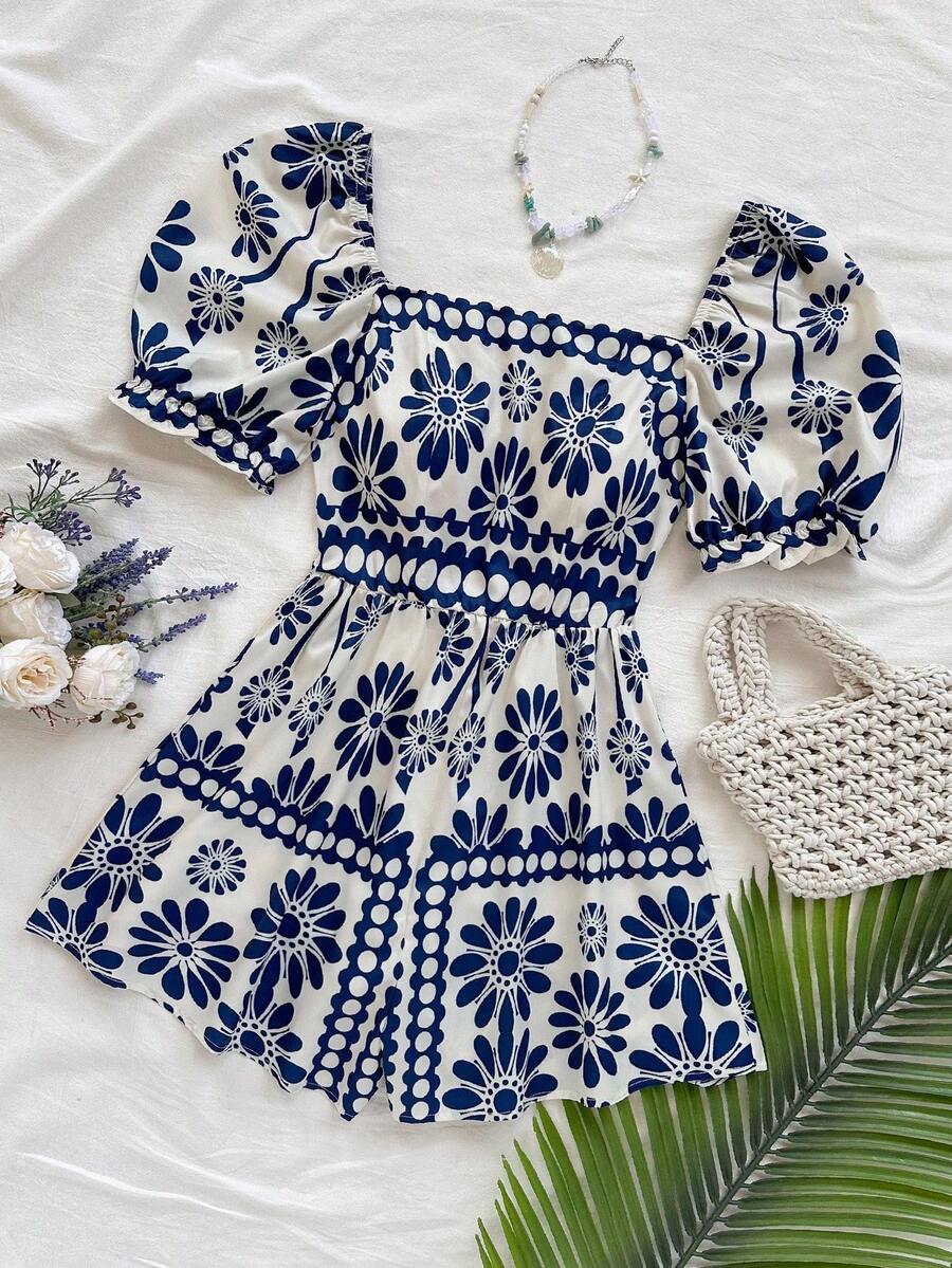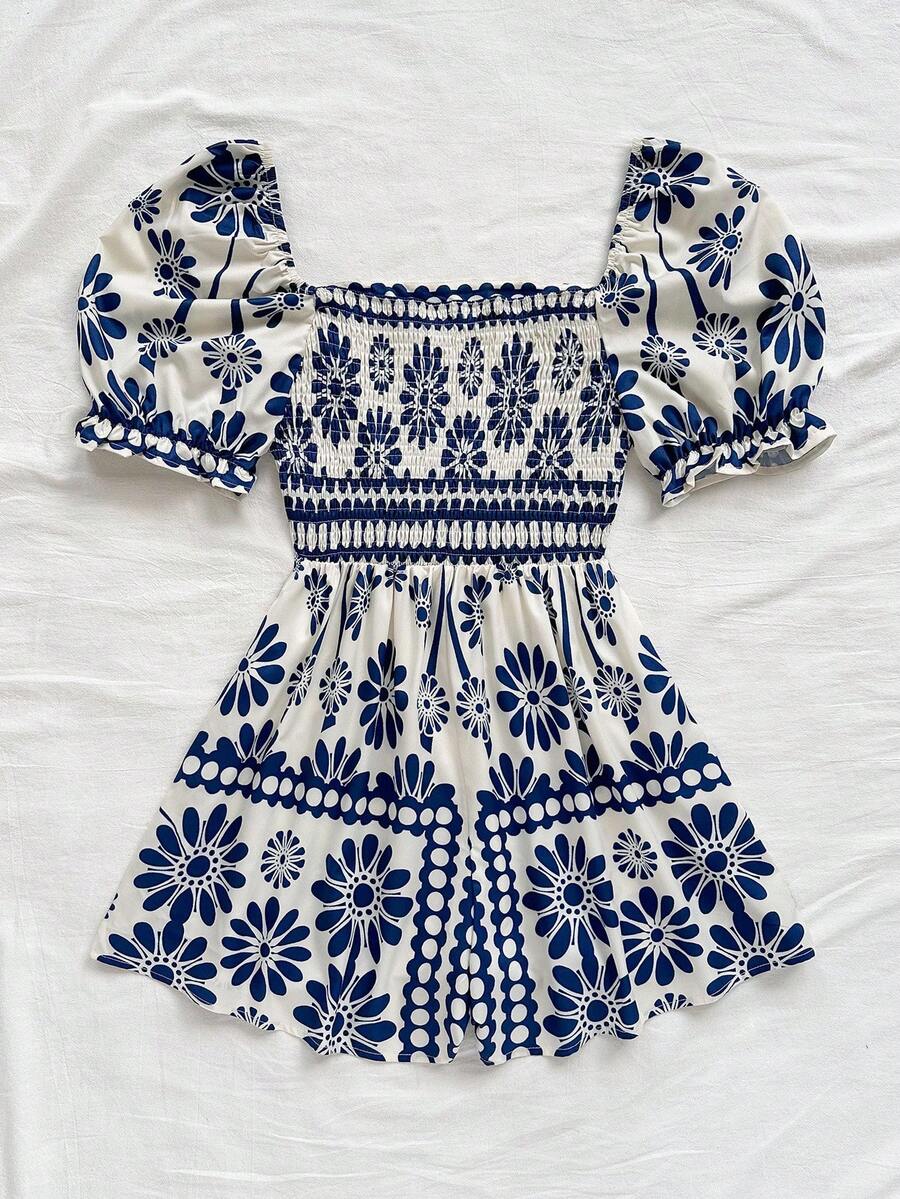 The square neckline beautifully highlights your collarbone, while the puff sleeves add a romantic retro touch. The cinched waist defines your shape, and the flowy wide-leg design gives you that relaxed, vacation-ready vibe.